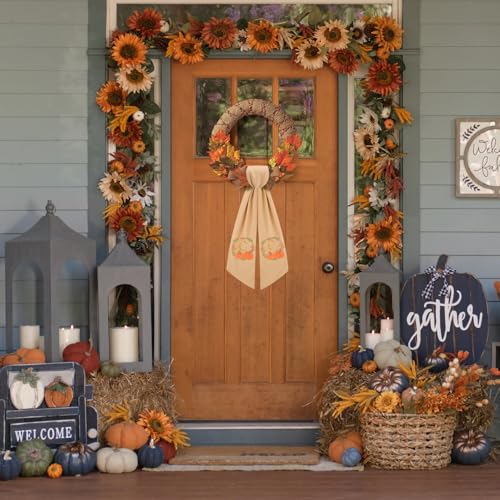 Introduce warmth and personalized elegance to your home with our 2 Pcs Fall Wreath Sash, featuring exquisite embroidery and a charming pumpkin design. Perfect for twin doors, these sashes set the stage for your fall and Thanksgiving decor, making a memorable first impression.