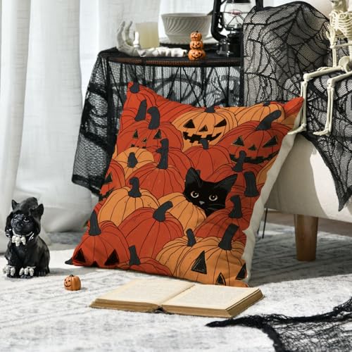 Halloween Pumpkin Black Cat Throw Pillow Cover - Farmhouse DecorHalloween Pumpkin Black Cat Throw Pillow Cover – Farmhouse Decor