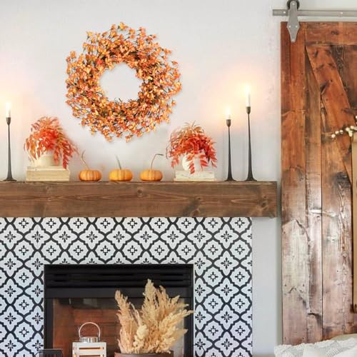 Crafted with high-quality materials, this 20-inch floral wreath is built to last, maintaining its vibrant colors and structure season after season. Its lifelike design ensures a timeless appeal, while the rich hues of orange and yellow mimic the beauty of real fall foliage.