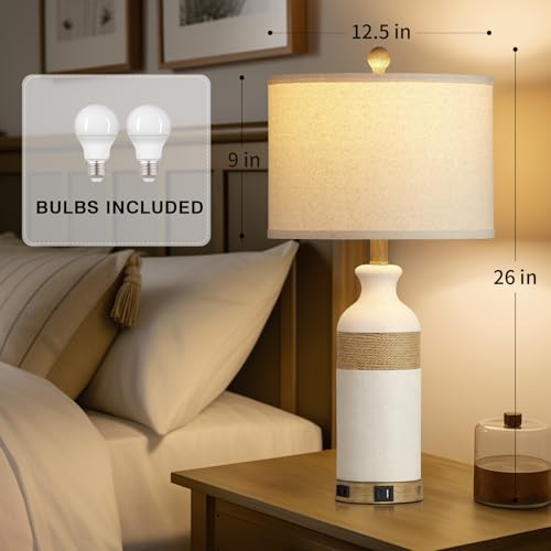 Experience the perfect blend of boho chic and farmhouse charm with the Cinkeda Boho Rattan Table Lamps. These 26-inch vintage-inspired lamps are a stylish addition to your bedroom nightstand or living room, providing both aesthetic appeal and practical functionality.
