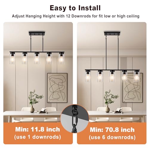 Transform your dining area with our Farmhouse Black Chandelier, a perfect blend of vintage rustic charm and modern minimalist home decor. This linear kitchen island lighting fixture delivers both style and functionality, creating a captivating focal point in any room.