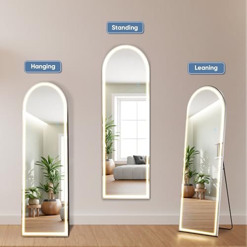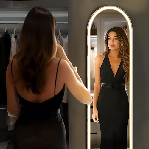 Illuminate your space with the DUMOS Arched Full Length Mirror. Featuring three color LED lights and elegant arched design, this mirror complements modern, bohemian, and farmhouse styles. Perfect for bedrooms, dressing rooms, or bathrooms, it offers a distortion-free reflection and shatter-resistant safety.