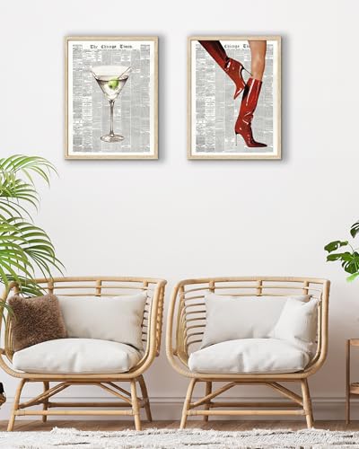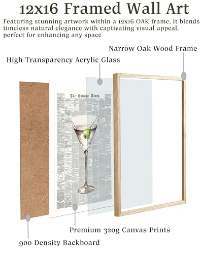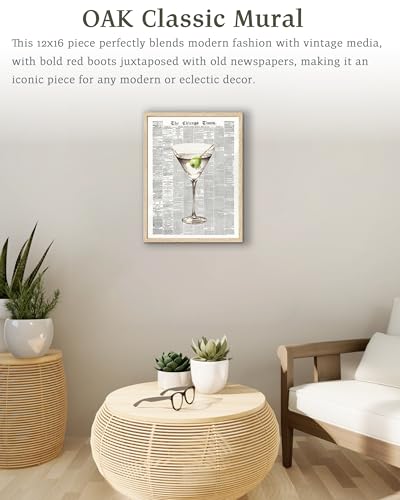 Elevate your interior with the EcoHest Trendy Newspaper Martini Wall Art. Crafted with a retro 70s vibe and encased in an elegant oak wood frame, this wall art adds a nostalgic yet modern touch to your home decor. Perfect for bedrooms, living rooms, or bar carts.