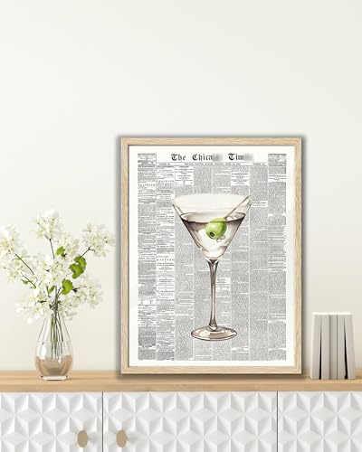 EcoHest Newspaper Martini Wall Art – Vintage Bar Canvas 12×16