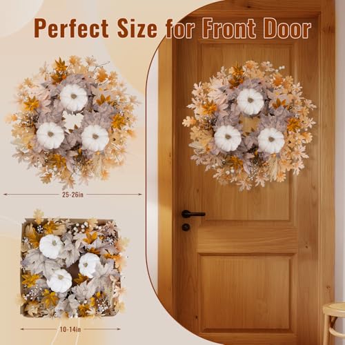 Embrace the rustic charm and warmth of autumn with this wreath, which creates a welcoming vibe for guests and loved ones. Its durable design ensures long-lasting use, while the easy-to-arrange leaves and decorations allow you to achieve the perfect full size of 26 inches effortlessly.