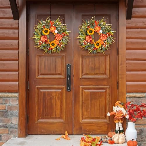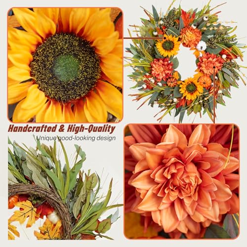 24 Inch Fall Wreath with Pumpkins & Sunflowers - Autumn Decor24 Inch Fall Wreath with Pumpkins & Sunflowers – Autumn Decor