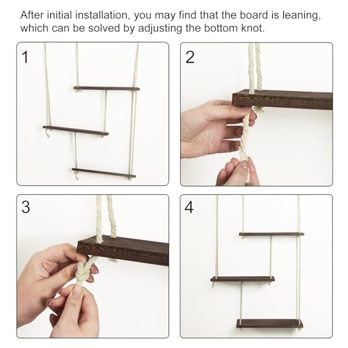 Each shelf measures 15.8×5.9 inches, with a total height of 34.8 inches, and can support up to 30 lbs. The set includes three paulownia boards, expansion plugs, screw hooks, and an installation manual for easy setup. This versatile hanging plant shelf is suitable for bedrooms, kitchens, bathrooms, and more.