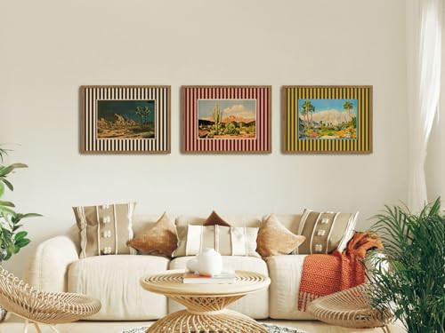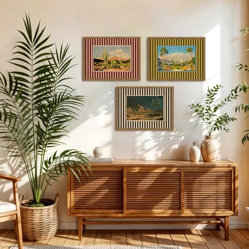 This wall art set is perfect for those who appreciate the boho wall decor style, combining vintage charm with modern aesthetics. The striped design adds a unique touch, making it a versatile addition to both rustic farmhouse and modern minimalist interiors. It’s an excellent choice for infusing warmth and personality into your living room, bedroom, or office.