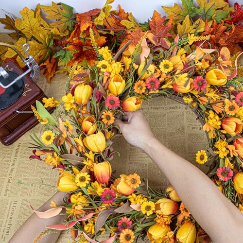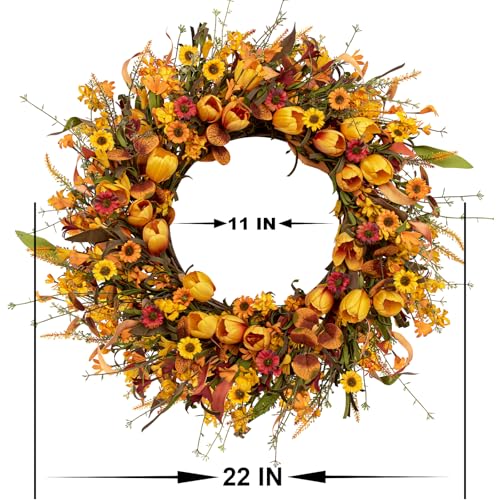 Transform your home with the LLZLL 22 Inch Fall Wreath, a stunning piece that captures the essence of autumn. With vibrant orange tulips and a mix of forsythia, daisies, and berries, this artificial wreath brings the season’s beauty to both indoor and outdoor settings. Its handcrafted design ensures a realistic and lasting impression, making it an ideal addition to your decor collection.