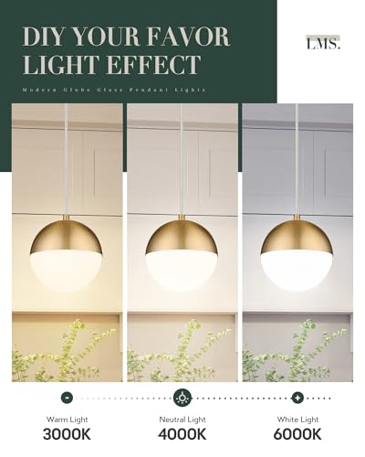 Transform your living space with the LMS Mid Century Pendant Lights. These exquisite fixtures feature a brushed gold metal frame paired with a milky white globe glass shade, bringing an air of modern luxury to your kitchen, dining area, or home office. The ambient lighting they provide adds warmth and elegance to any room.