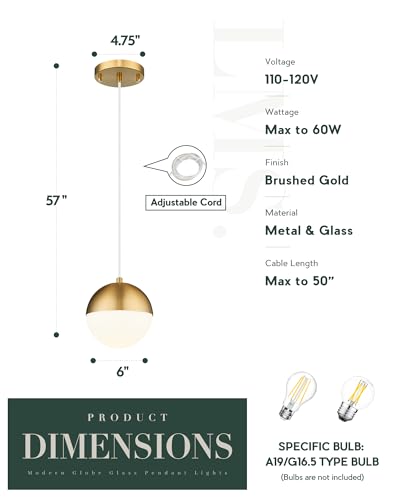 The pendant lights are designed to accommodate both flat and sloped ceilings, offering flexibility in installation. With 50-inch adjustable hanging cords, you can customize the height to suit your needs and aesthetic preferences. The glass shade measures 6 inches in diameter, perfectly balancing style and function.