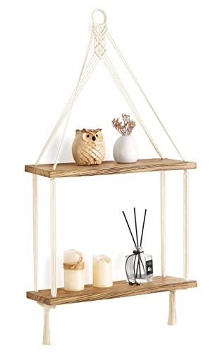 Mkono Boho Wall Decor – 2 Tier Macrame Hanging ShelfMkono Boho Wall Decor – 2 Tier Macrame Hanging Shelf