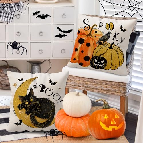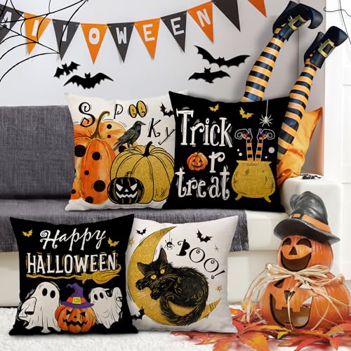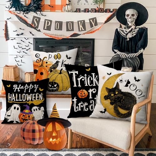 Transform your home into a Halloween haven with the Unibyby Halloween Pillow Covers. This set of four festive pillowcases, adorned with spooky pumpkins and black cats, brings a playful yet stylish touch to your decor. Ideal for both modern minimalist home settings and cozy farmhouse living rooms, these covers offer a perfect seasonal accent.