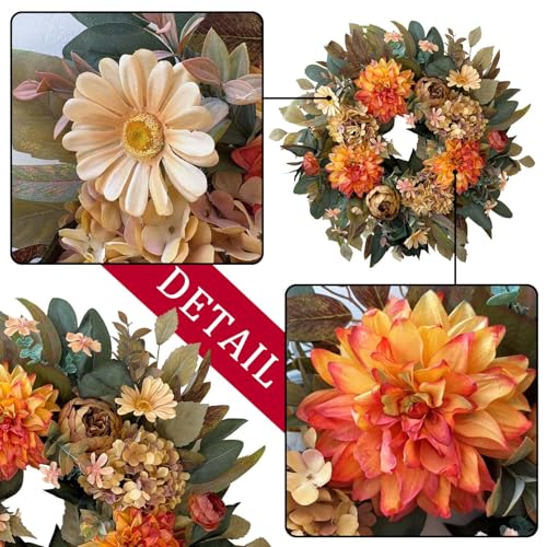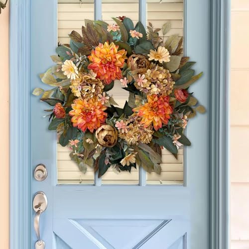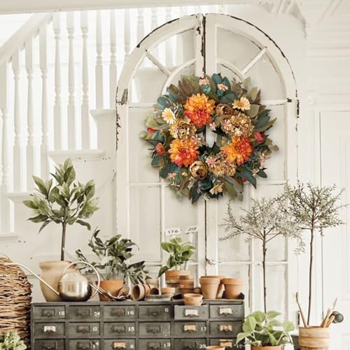 Introducing the WANNA-CUL 24 Inch Fall Wreath, a perfect blend of seasonal elegance and timeless style. This exquisite wreath features lush orange hydrangeas, delicate peonies, and bright dahlia flowers, all set against a natural twig base. Whether you’re embracing the cozy charm of autumn or adding a touch of sophistication to your spring decor, this wreath is your ultimate choice.