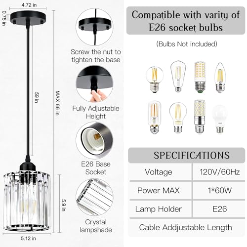 Our pendant lights boast sophisticated crystal glass shades that sparkle with elegance. The premium build ensures lasting durability, while the adjustable cables offer customized hanging lengths. Designed to fit all standard E26 base bulbs, these lights seamlessly blend style with functionality.
